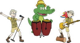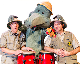 Arne Alligator & Djungeltrumman består av två safariklädda herrar: Tomas Nyberg, Macke Granberg och Arne Alligator. De skriver låtarna själva och producerar dem i Mackes Alligator-studio. På scenen gör Arne Alligator & Djungeltrumman en intensiv och humoristisk show där Tomas sjunger, Macke rockar på gitarren och Arne Alligator hittar på hyss och spelar på sina röda kongas. Ibland spökar det på scenen. Ibland så ryker det ur skorsten så man måste ringa Torsten med Borsten. Ibland pratar de bara strunt. På konserterna får man alltid sjunga med, klappa och dansa. Orkestern uppträder i tre- eller sexpersoners uppsättning.